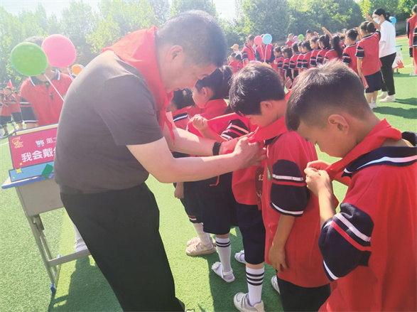 大队辅导员李素华:我见证着你们在少先队的大家庭里,从懵懂孩童逐渐成长为有担当、有活力的少年,备感骄傲。未来的道路或许充满挑战,但只要你们心怀梦想,勇往直前,就一定能实现自己的价值。愿红领巾时刻激励着你们,向着光明的未来展翅翱翔!