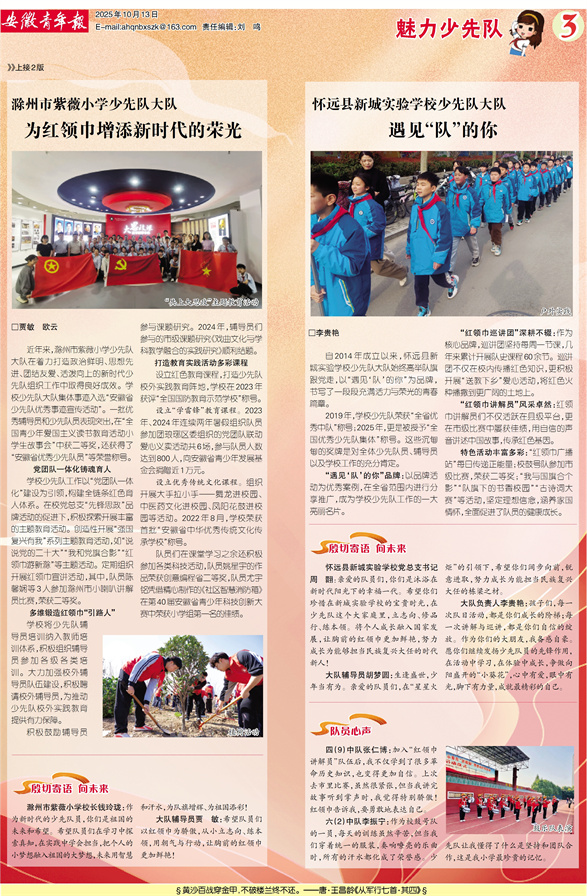 自2014年成立以来,怀远县新城实验学校少先队大队始终高举队旗跟党走,以“遇见‘队’的你”为品牌,书写了一段段充满活力与荣光的青春篇章。
